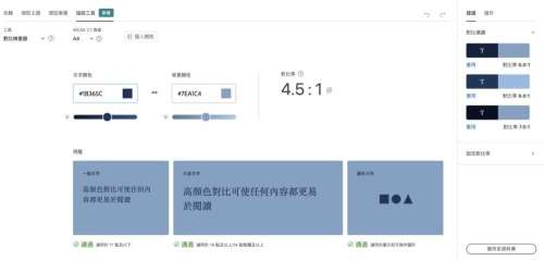 可以合理的帮你检查 2 个颜色的对比,预览中可以告诉你在什么样的情况下可以这样用色,当然在右侧也会给你颜色的建议,你也可以自己设定对比率去调整颜色,这样使用你的颜色再也不会显得又脏又 low 了!