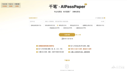 千笔AI论文(原AIPaperPass)是全网首家免费改稿AI论文写作平台,5分钟可产出5万字,提供真实网络数据、图、表、公式、代码,不限次2000字3级大纲,附带PPT、开题报告、任务书、40篇真实参考文献。知网AIGC率超25%退费,重复率超15%退费。千笔AI论文融合了先进的AI技术与丰富的学术资源,为用户提供了全面的论文写作支持,包括但不限于论文写作辅助、研究建议与指导、文献综述生成和论文修订与优化。