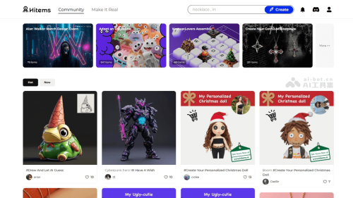 Hitems 是数美万物推出的AI创意物品生成社区,基于前沿的生成式人工智能(GenAI)技术,用户通过关键词、图片或手绘稿快速生成高保真度的物品图像,基于自研的 AI 3D 建模技术和成熟的供应链体系,将创意物品迅速投入生产。Hitems 提供交易服务,互动社区,供用户分享、浏览与互动创意。